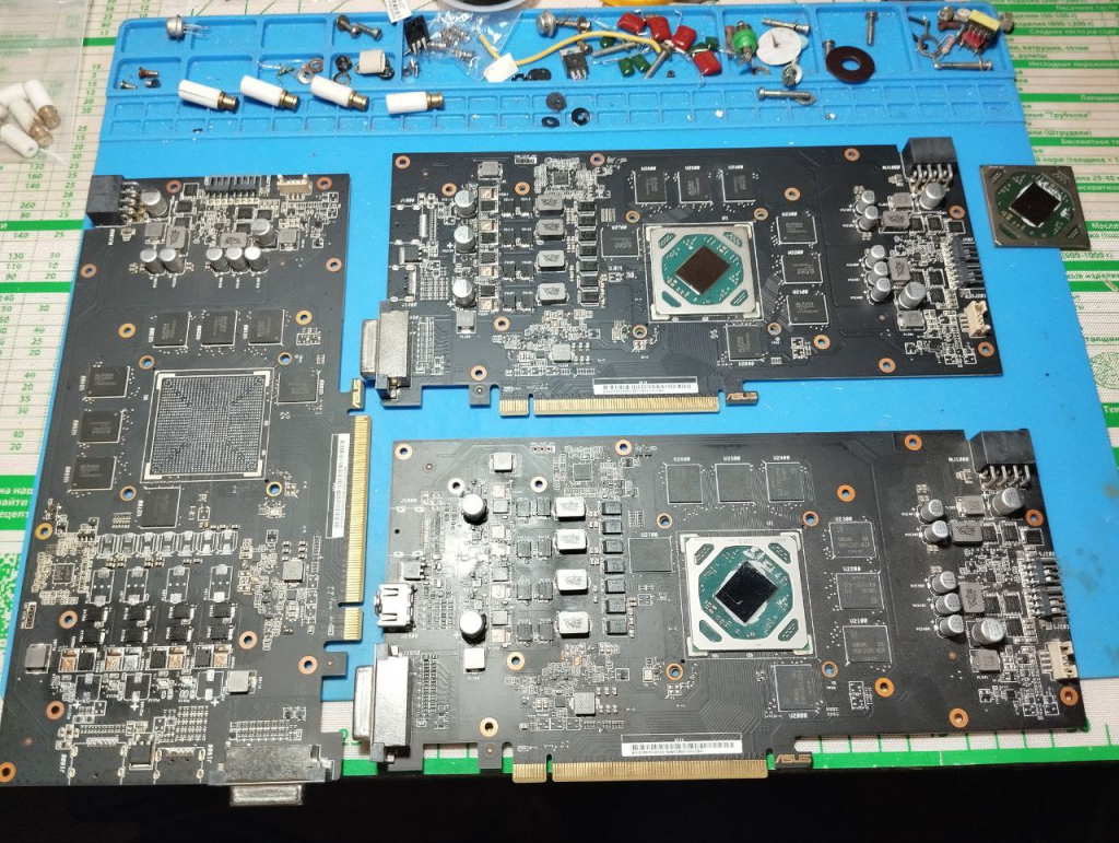 Иногда в ремонт попадают не одна и не две видеокарты, а целая партия.